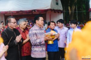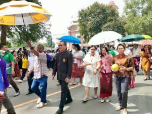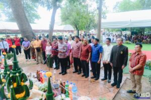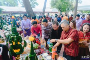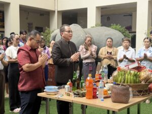 18 กันยายน 2568 ผู้ช่วยศาสตราจารย์ ดร.ชัย สมรภูมิ รักษาในตำแหน่งผู้อำนวยสำนักงานอธิการบดี มหาวิทยาลัยราชภัฏสุรินทร์ พร้อมด้วยบุคคลากรทุกภาคส่วนของ สำนักงานอธิการบดี เข้าร่วมงานประเพณีแซนโฎนตา วันกตัญญู บูชาบรรพบุรุษ ประจำปี 2568 ณ บริเวณศาลตายาย มหาวิทยาลัยราชภัฏสุรินทร์ มีรองศาสตราจารย์ฉลอง สุขทอง อธิการบดีมหาวิทยาลัยราชภัฏสุรินทร์ คณาจารย์และบุคลากรมหาวิทยาลัยราชภัฏสุรินทร์ ได้พร้อมใจกันนำเครื่องเซ่นไหว้และอาหารคาวหวานมาร่วมพิธีอย่างพร้อมเพรียงกัน เพื่อแสดงความกตัญญูและรำลึกถึงพระคุณของบรรพบุรุษผู้ล่วงลับ รวมถึงเป็นการสืบสานและอนุรักษ์วัฒนธรรมประเพณีอันดีงามของชาวอีสานใต้ให้คงอยู่สืบไป ( Cr.คณะมนุษย์ศาสตร์และสังคมศาสตร์ มรภ.สร )