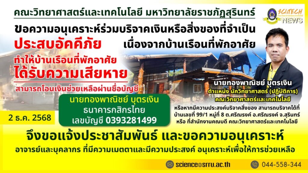 * สำนักงานอธิการบดี มหาวิทยาลัยราชภัฏสุรินทร์ ขอแสดงความเสียใจ และขอเป็นกำลังใจ