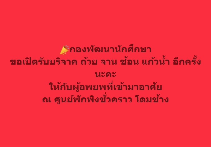 ขอเชิญชวนทุกท่านร่วมส่งต่อกำลังใจและความช่วยเหลือให้ถึงมือผู้ที่ต้องการอย่างแท้จริง น้ำใจเล็ก ๆ ของท่าน มีค่ามหาศาลสำหรับพวกเขาในยามยากลำบาก
