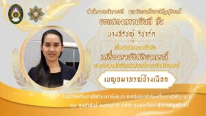 - นางสิริขวัญ ใจกล้า เจ้าหน้าที่บริหารงานทั่วไป เข้ารับเครื่องราชอิสริยาภรณ์ ชั้น เบญจมาภรณ์ช้างเผือก